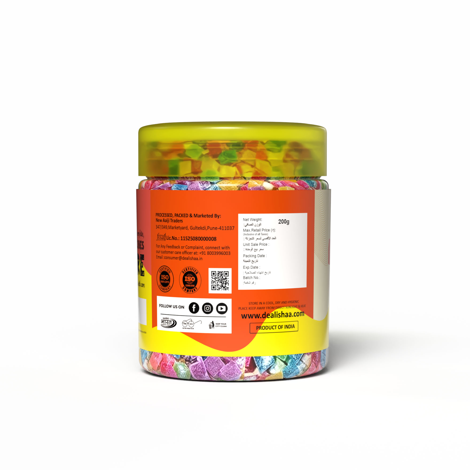 A playful burst of color and flavor in every bite! Dealishaa Jelly Cubes are a delightful treat for kids and adults alike — made with real fruit flavors and a chewy texture you’ll love.