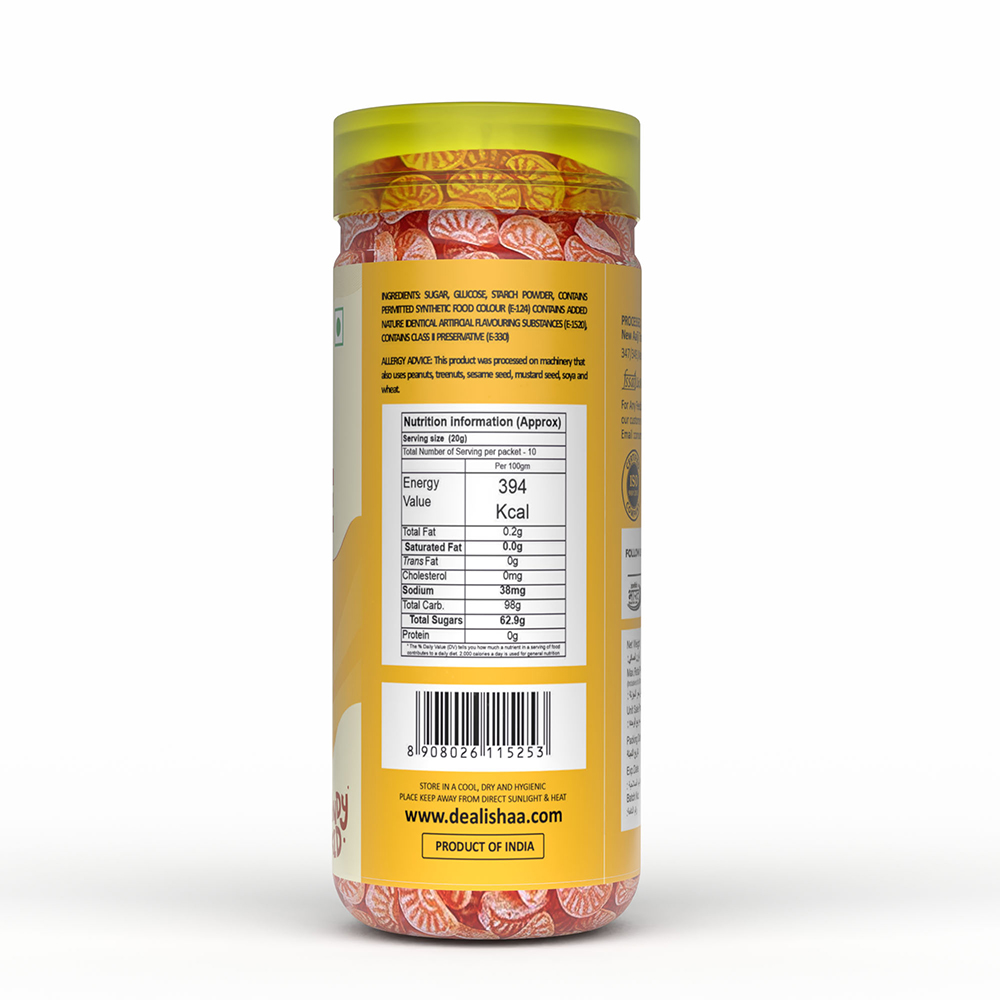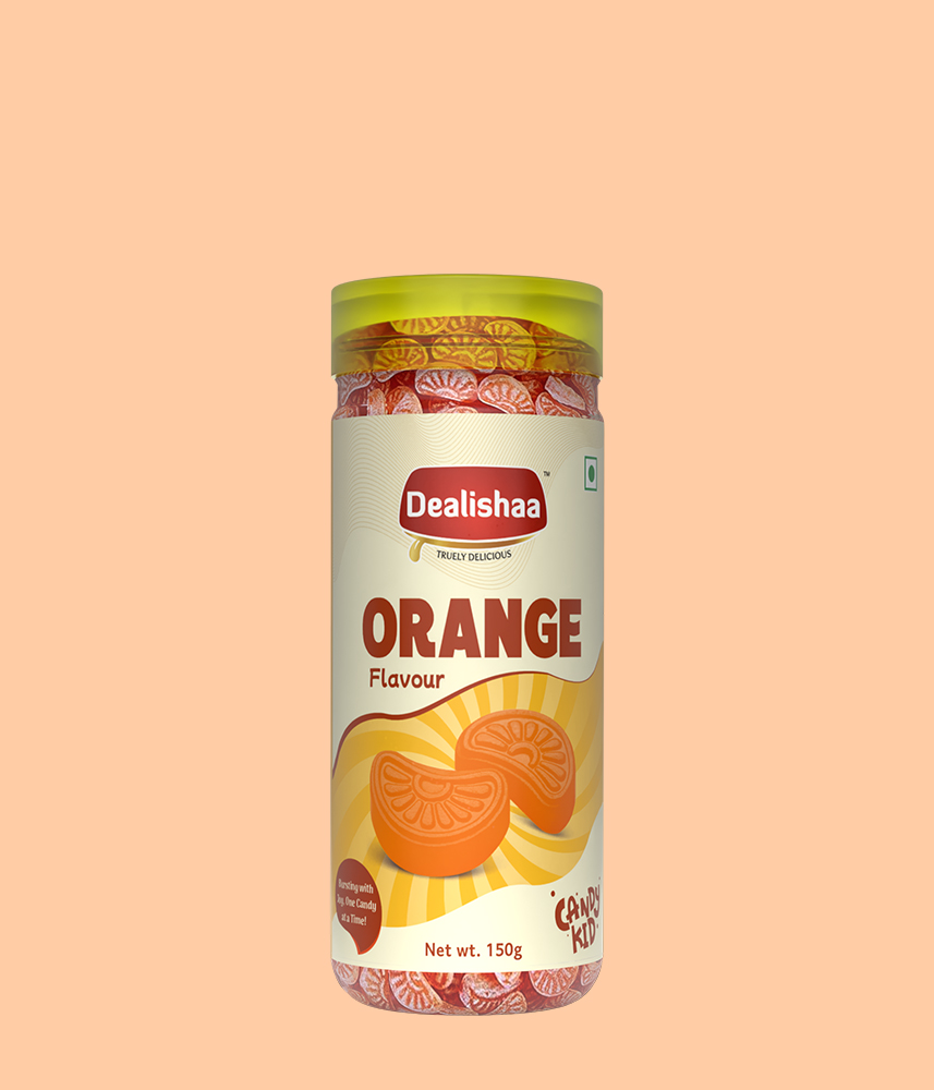 Dealishaa Orange Candy packs the juicy zest of oranges into bite-sized sweetness, perfect for those who love tang with a twist.