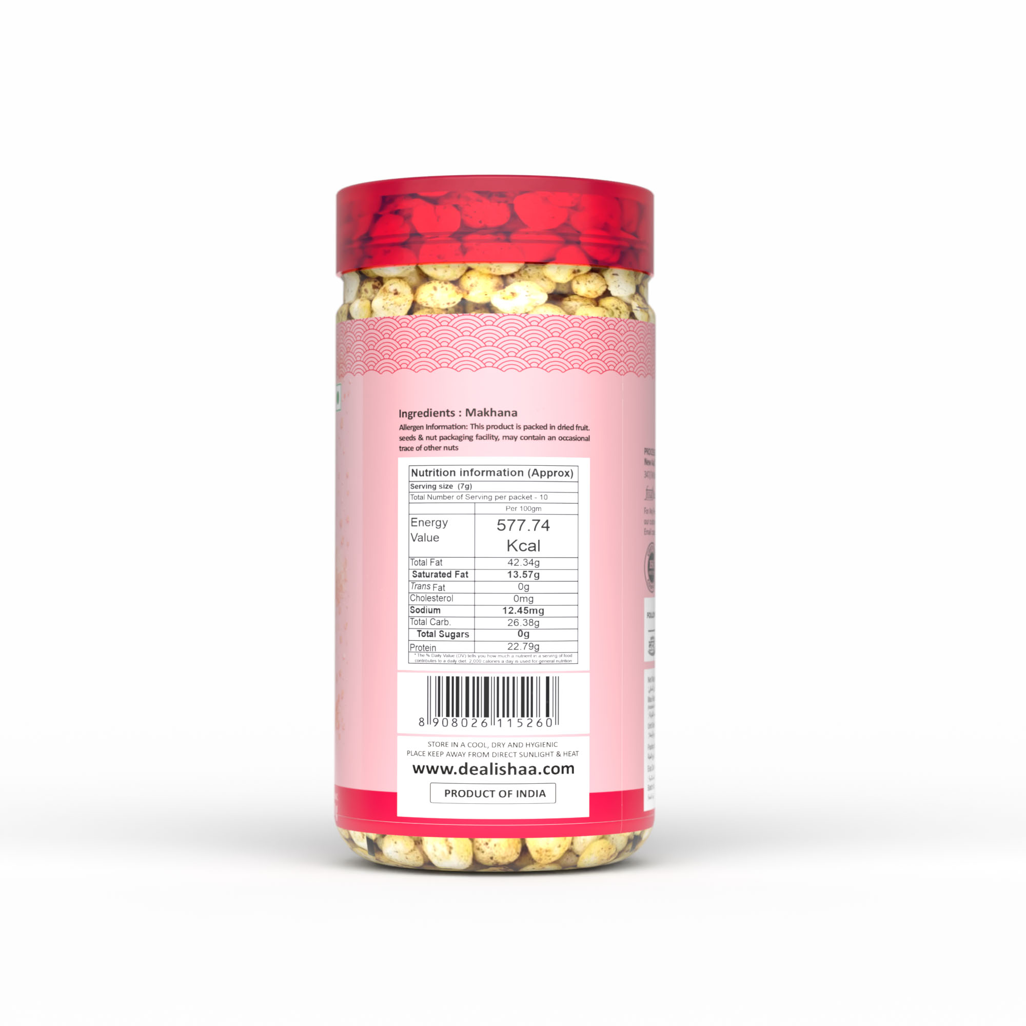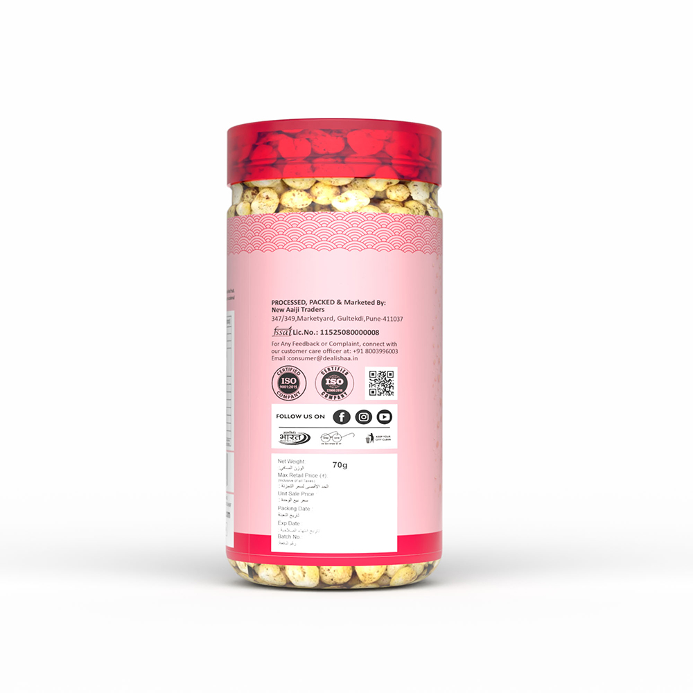 Rediscover the beauty of minimalism with Dealishaa Rock Salt Makhana – roasted lotus seeds lightly seasoned with natural rock salt. This clean and calming snack is ideal for fasting, detox, or mindful eating.